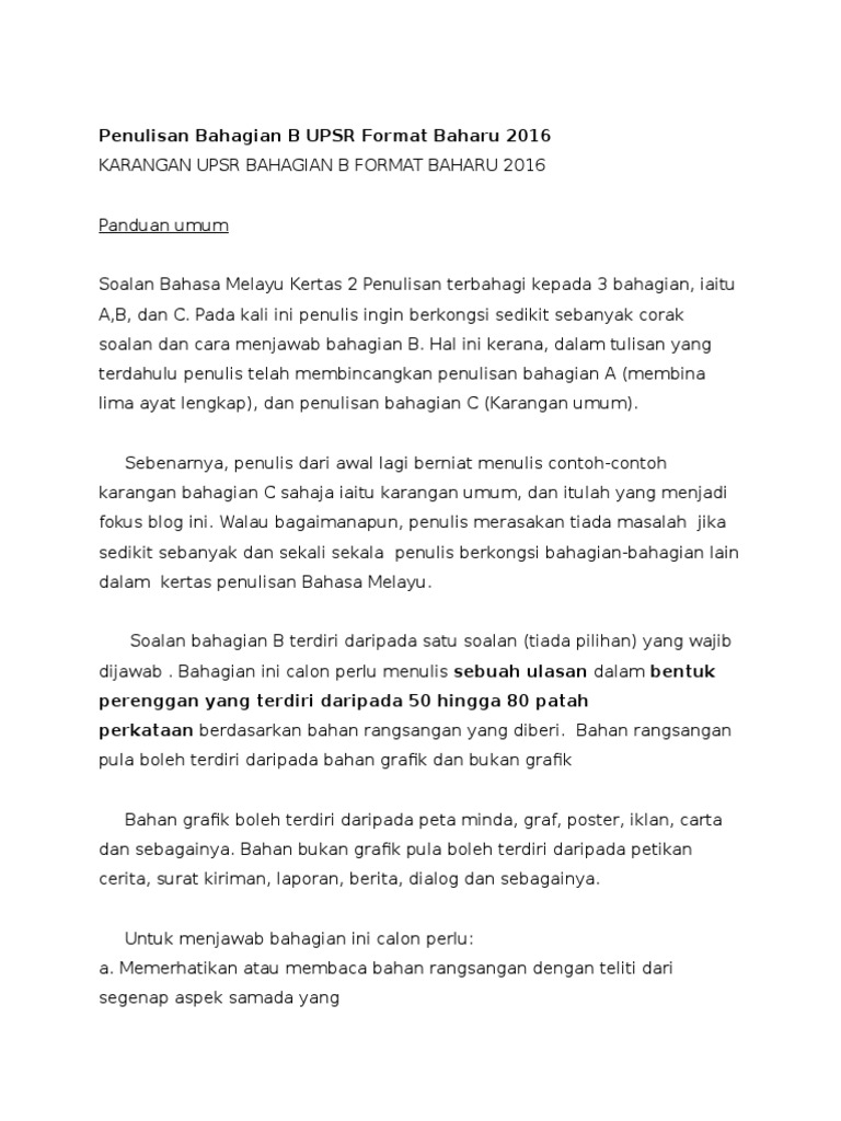 Penulisan Bahagian B Upsr Format Baharu 2016 Pdf